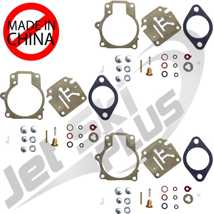 Set of 3 premium JetSki Plus brand carburetor rebuild kits for Johnson and Evinrude outboard motors as noted below.