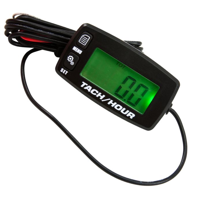 New back lit water & dust resistant tachometer / hour meter with maintenance interval & job timers with replacable battery.