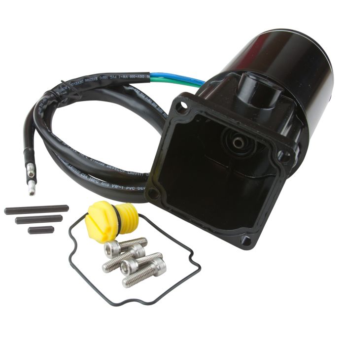 New aftermarket Mercury/Mariner/Force 2 wire trim motor for single ram applications with resivoir. A quality replacement for the following Mercury/Mariner/Force trim motors: