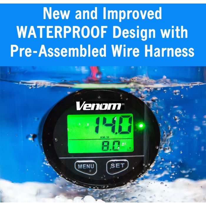 New waterproof Version of our Venom 12-24v backlit GPS spedometer / volt meter / clock.