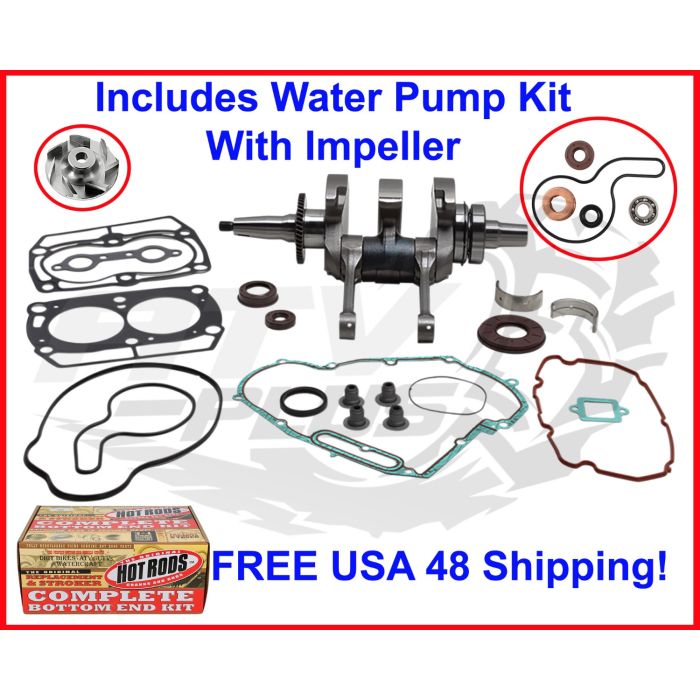 Hot Rods bottom end rebuild kit with water pump rebuild kit with impeller (See chart for year & model fit).