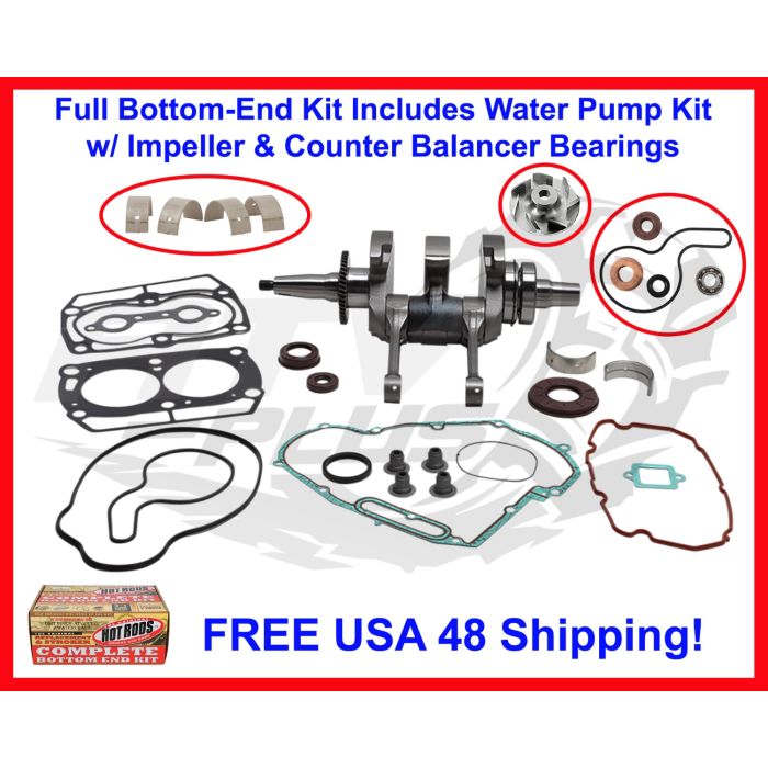 Deluxe Hot Rods COMPLETE bottom end rebuild kit with the counterbalancer bearing kit & water pump kit with impeller (As pictured, See chart for year & model fit).
