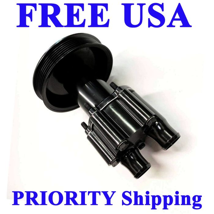 Complete aftermarket Bravo seawater pump assembly with pulley for MerCruiser models listed below.
