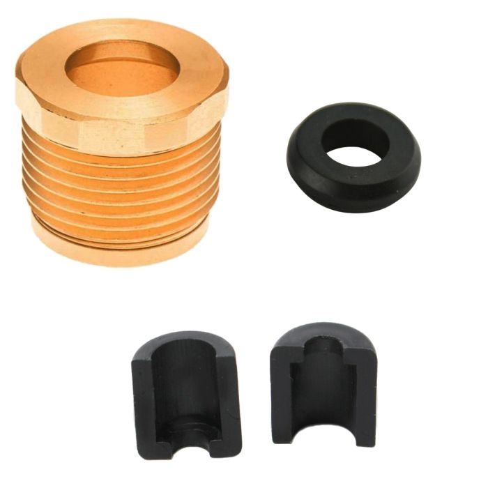 New and improved Venom Brand Sea-Doo BRASS reverse/steering cable retaining nut kit with half ring retainers & cable seal.
