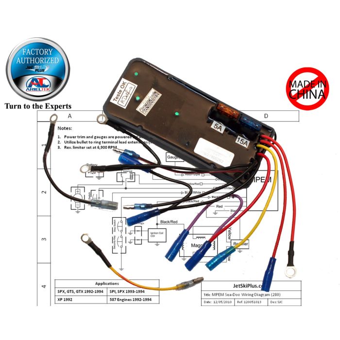 Includes wiring instructions/diagram developed by Jet Ski Plus. Our diagrams are verified for accuracy against SeaDoo's OEM shop manual wiring diagrams for every model and year this MPEM fits.
