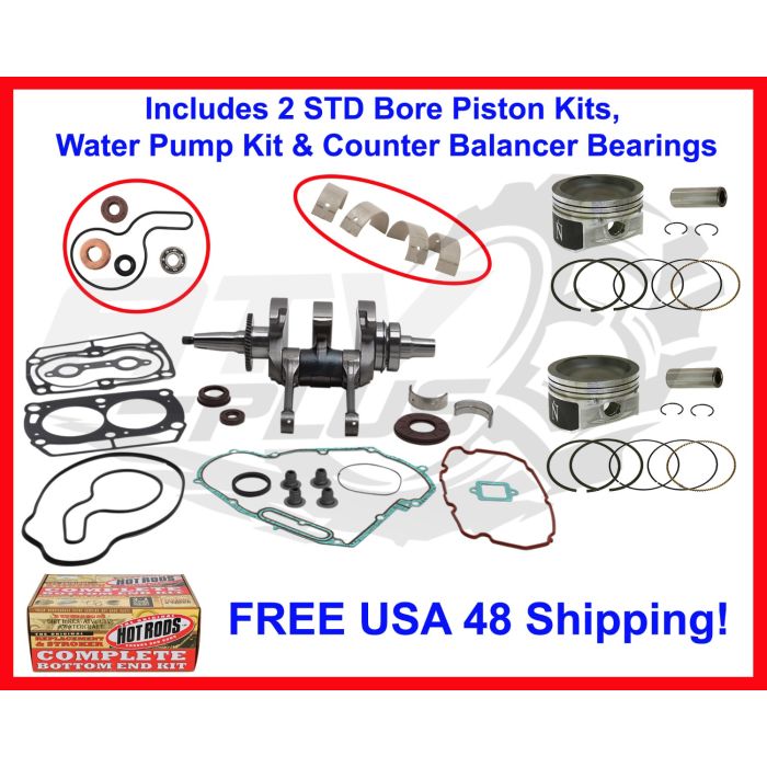 Hot Rods engine rebuild kit with Namura coated pistons the counterbalancer bearing kit & water pump kit (See chart for year & model fit).