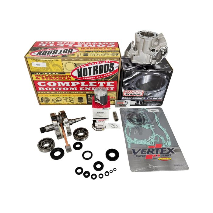 Hot Rods engine rebuild kit with new crankshaft, cylinder, cylinder head, & Wiseco top-end piston kit (See chart for year & model fit).